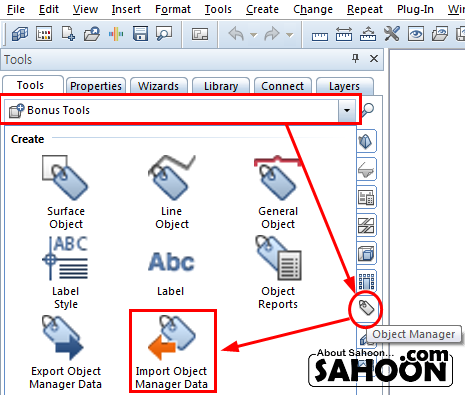 3-3. 다시 Allplan으로 와서 Bonus Tools (Object Manager 탭) -> Import Export Object Manager Data 를 실행합니다.
