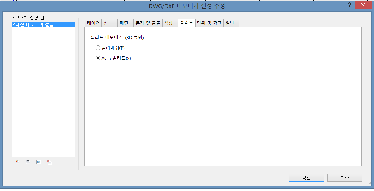 내보내기 DWG 설정을 그림과 같이 한후, AutoCAD 2010버전으로 저장.
