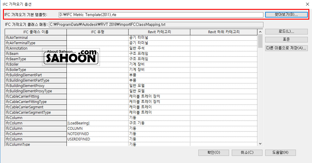 ② IFC가져오기 기본 템플릿 에서 찾아보기를 클릭후 첨부된 파일을 선택합니다.